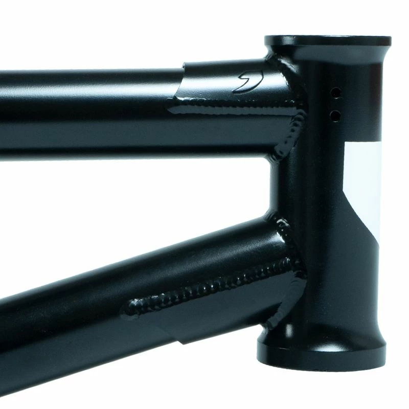 Tubes en chromoly sans variation d’épaisseur, colonne de direction ainsi que boitier et pattes arrière sont traité thermiquement.