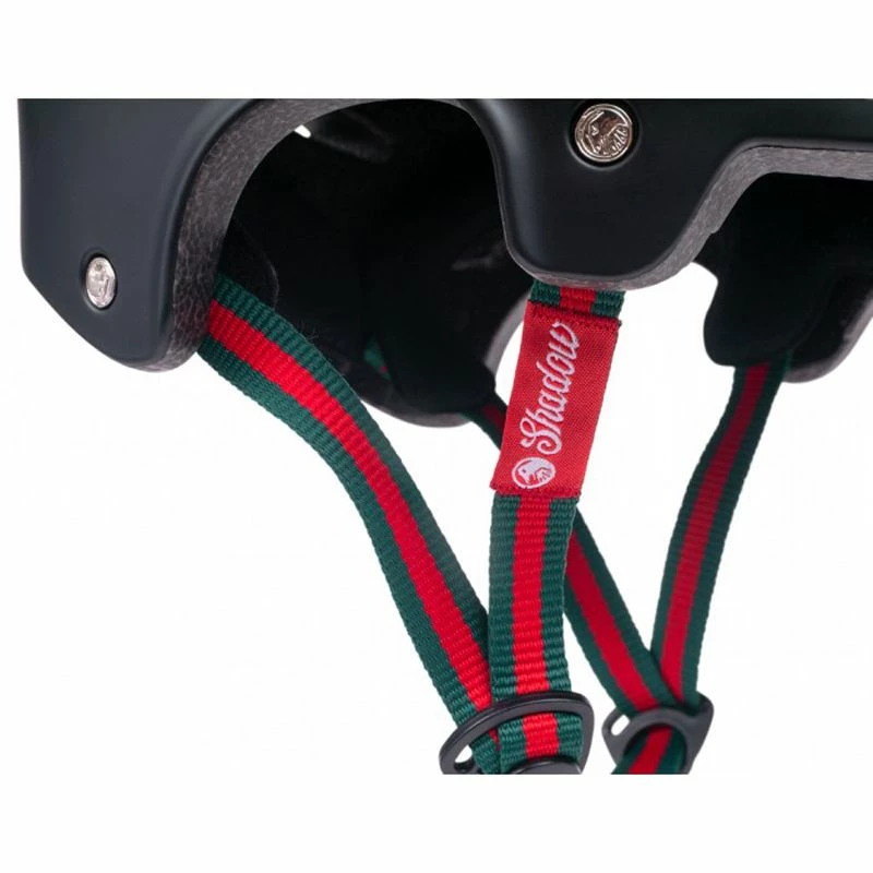 Le casque possède 10 ventilations en forme de coffin et les rivets de fixation des sangles sont stylisés avec le logo Shadow.