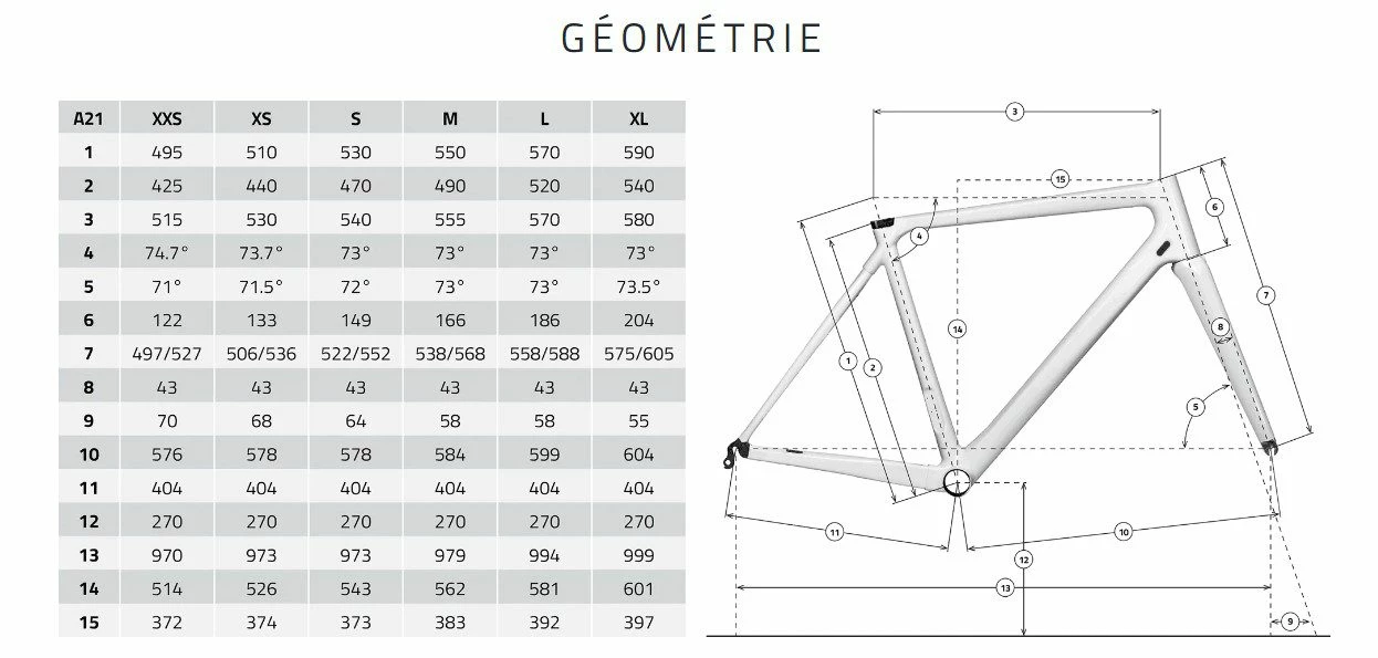 Le même vélo équipé en Shimano 105 R7000 11V 3599€, Shimano Ultégra R8070 Di2 11V 4799€, en Shimano 105 7100 Di2 12V 4499€, en Shimano Ultégra 8100 Di2 12V 4999€, en Shimano Dura-Ace Di2 12V 5999€, en SRAM Rival AXS 12V 4499€, en SRAM Force AXS 12V 4799€, en SRAM Red AXS 12V 5799€, en ROTOR Uno 11V 3799€ etc …